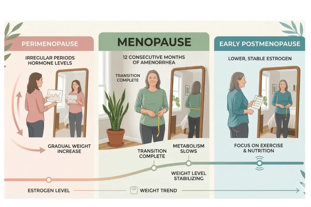 Menopause weight gain rarely occurs overnight. Instead, it typically develops slowly due to several biological changes happening simultaneously.